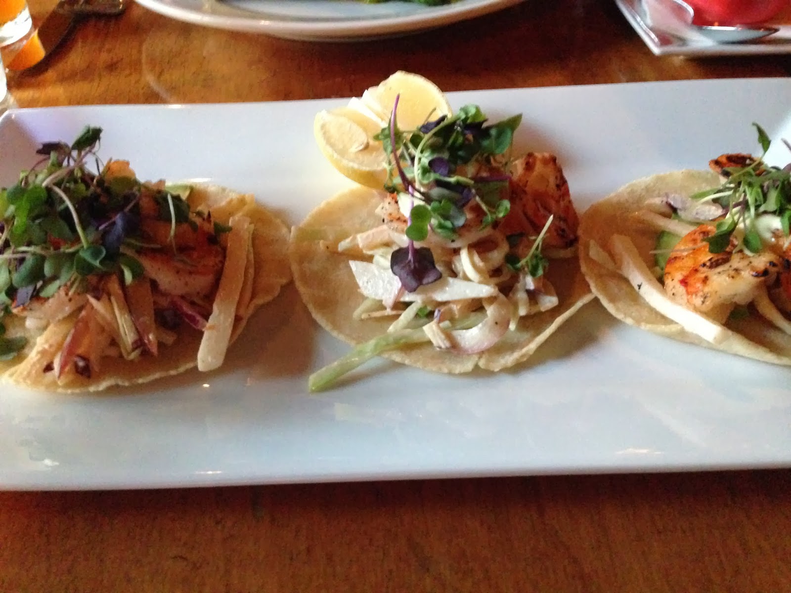 Our first night in NYC we discovered we were only two blocks from Restaurant Row in Hell's Kitchen. We went to Hell's Kitchen restaurant which is now progressive Mexican or Noveau Mexican. It was absolutely delicious. I had the grilled shrimp tacos.